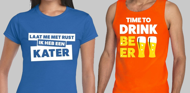 Met een muziek of feest T-shirts ben je meteen in een goede stemming. Om te gaan dansen, in de disco of op het volgende festival kunt u zeker punten scoren met een originele tekst op uw t-shirt. U bedenkt de tekst en wij verzorgen de opdruk in stijl. Ook al vanaf 1 stuks en dezelfe dag klaar mits u er op tijd bij bent.